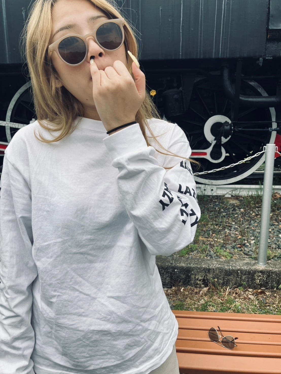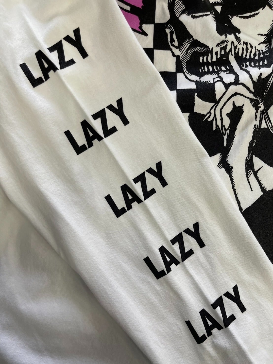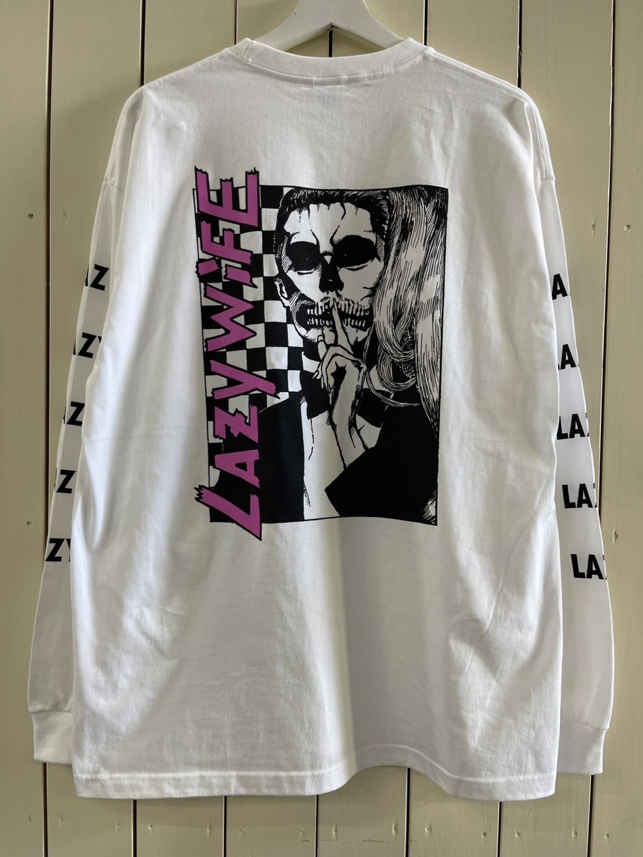 胸にワンポイント、背面に骸骨女のユニセックスデザインとなっています。